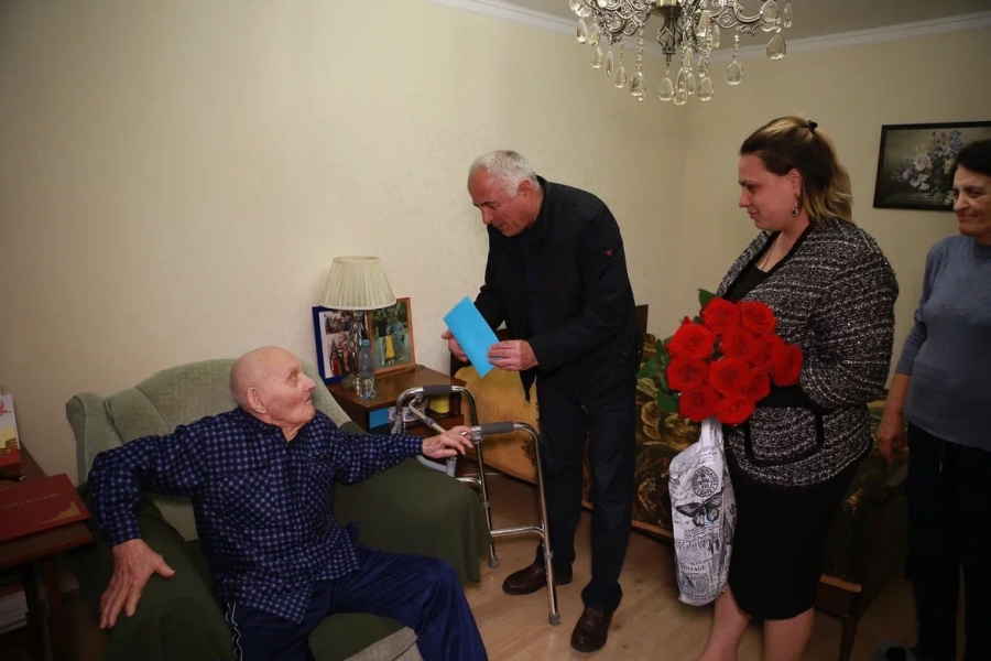 На кануне дня Победы Первый вице-премьер, министр сельского хозяйства Беслан Джопуа от лица руководства Республики поздравил ветерана Великой Отечественной войны Шония Алексея Иосифовича с 78-й годовщиной Победы.